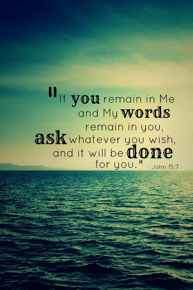 5 “I am the vine; you are the branches. If you remain in me and I in you, you will bear much fruit; apart from me you can do nothing. 6 If you do not remain in me, you are like a branch that is thrown away and withers; such branches are picked up, thrown into the fire and burned. 7 If you remain in me and my words remain in you, ask whatever you wish, and it will be done for you. 8 This is to my Father’s glory, that you bear much fruit, showing yourselves to be my disciples.